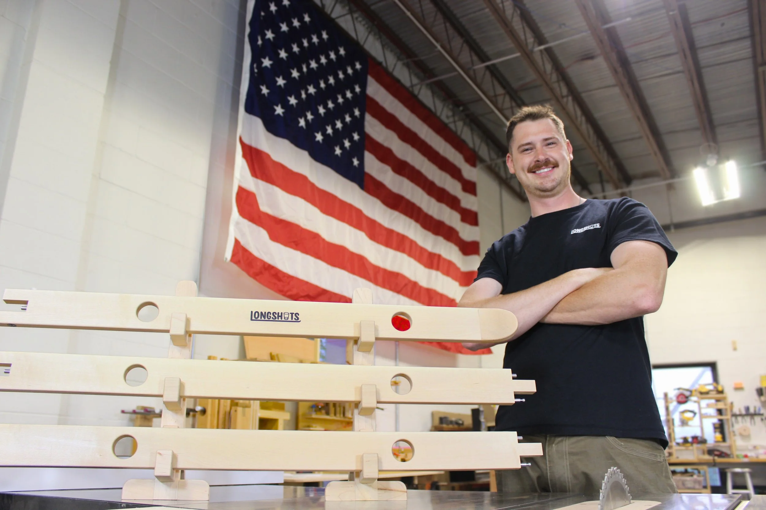 The story of Longshots began with a surprise like I'd never seen before! For my 30th birthday, amidst the joyful chaos of a surprise party, I received a gift, the likes of which I’ve never seen before: a magnificent, seven-person shotski emblazoned with the stars and stripes. It was love at first sight!
